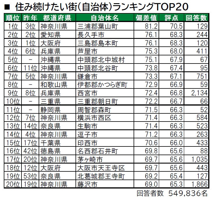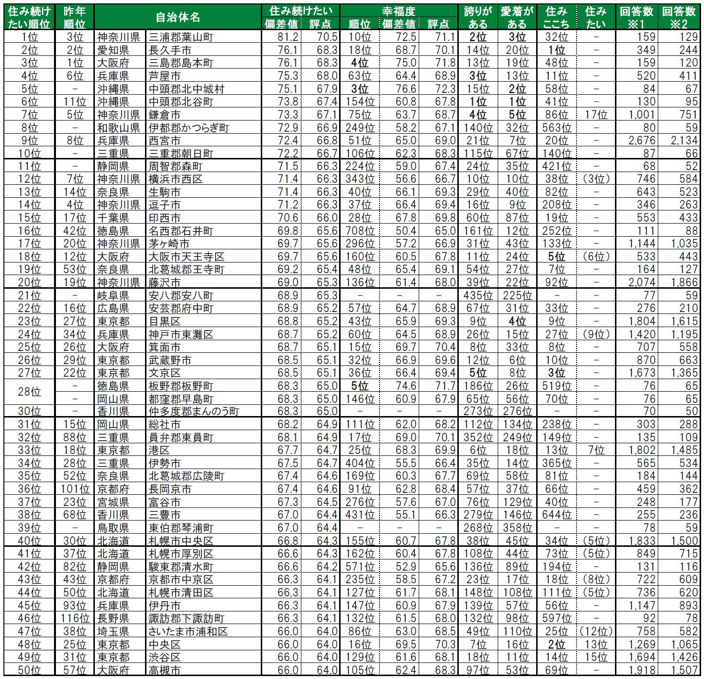 - 住み続けたい街(自治体)ランキング<全国版>1~50位