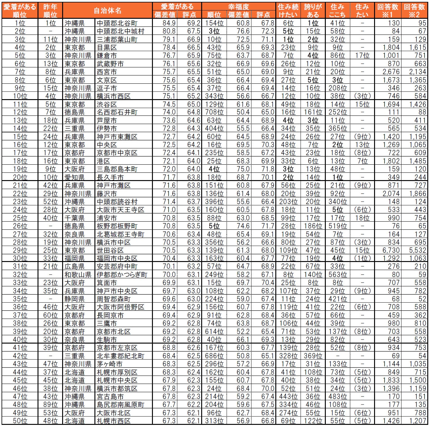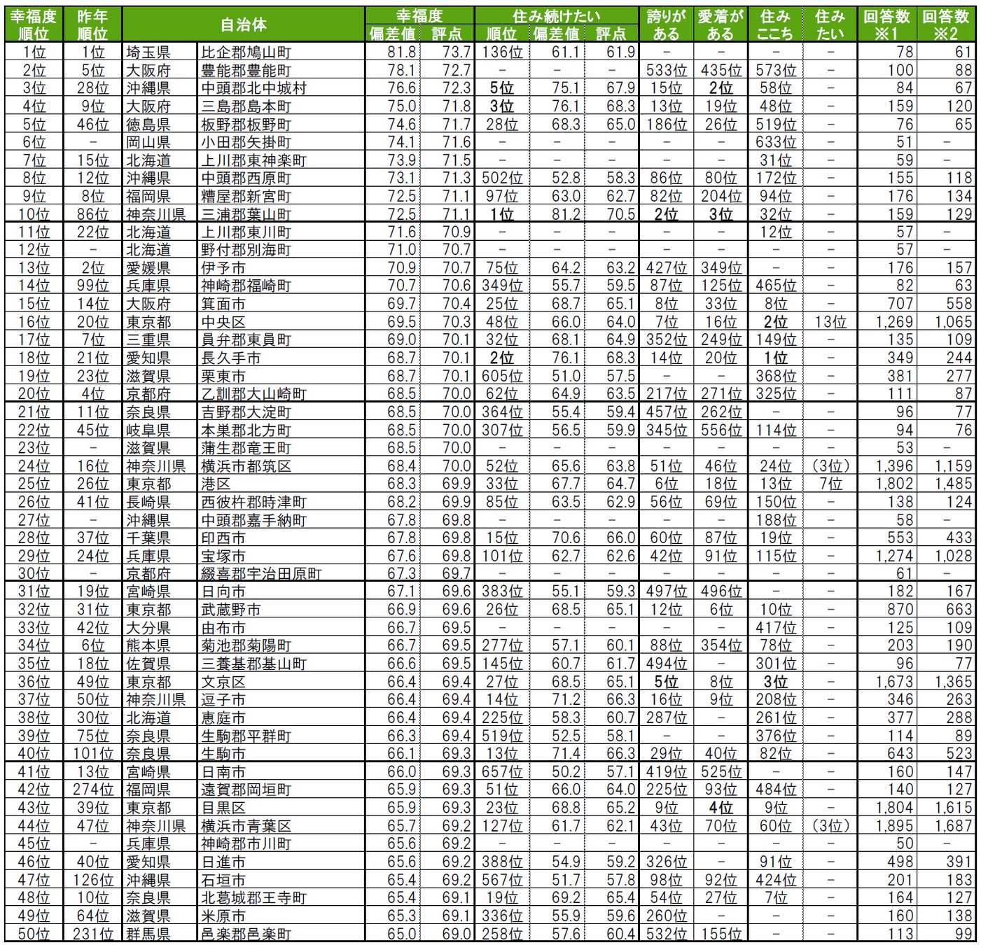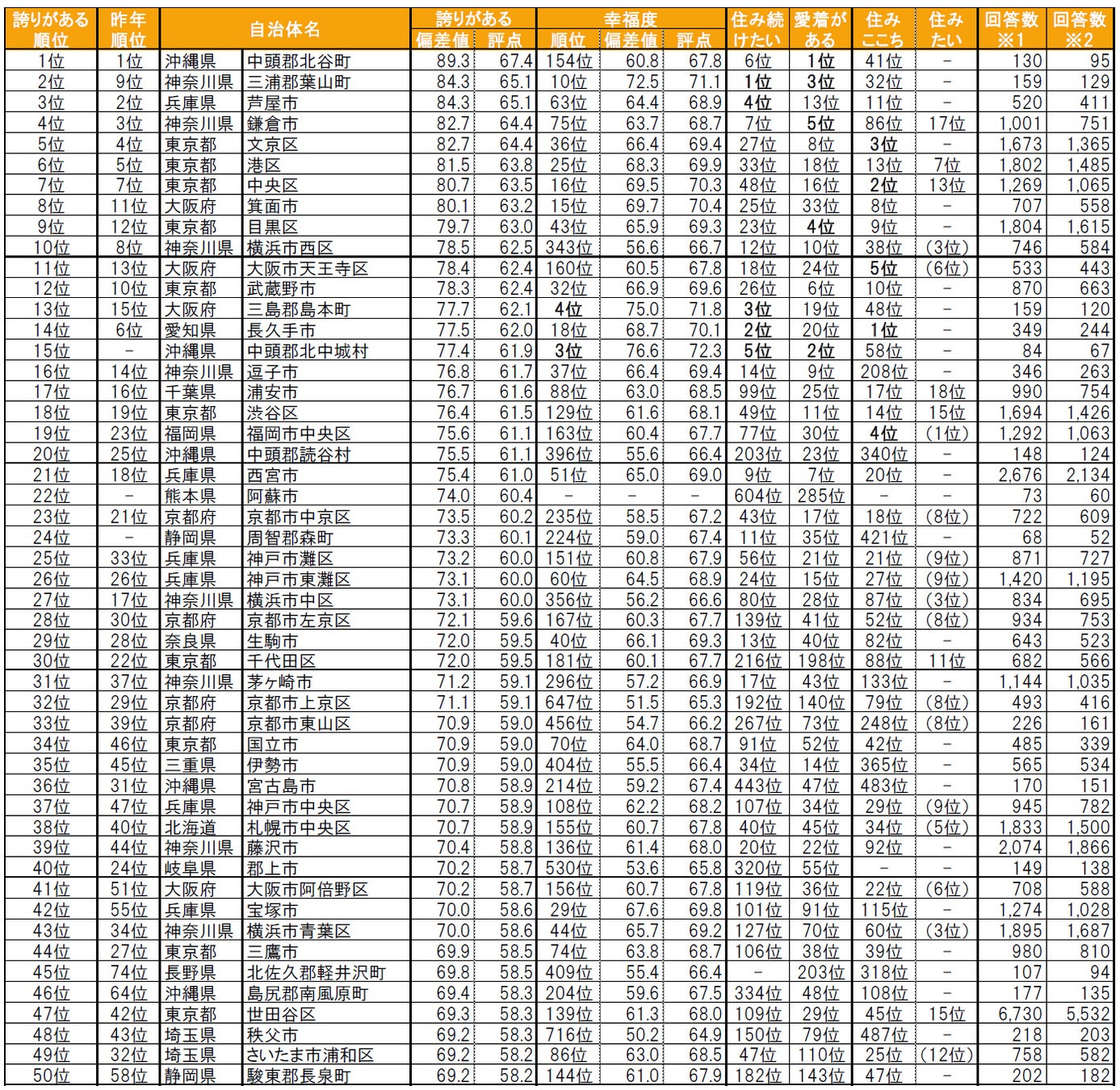 - 街の幸福度(自治体)ランキング<全国版>1~50位