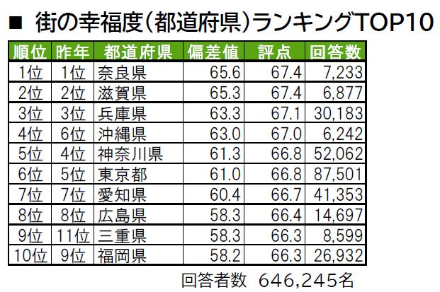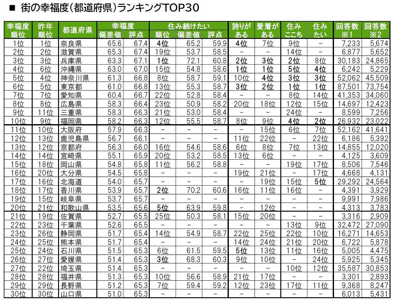 ■街の幸福度(都道府県)トップは、2年連続で奈良県