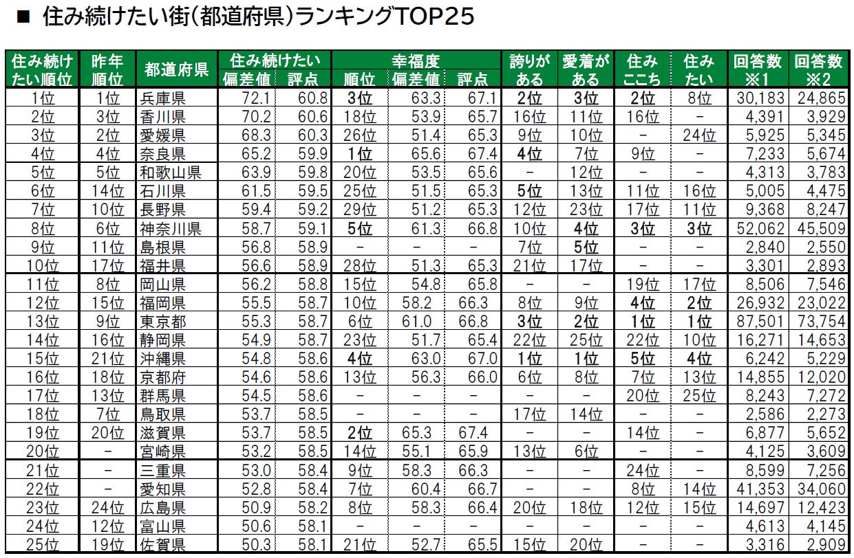 - 街の幸福度<TOP30> ・住み続けたい街<TOP25> 都道府県ランキング