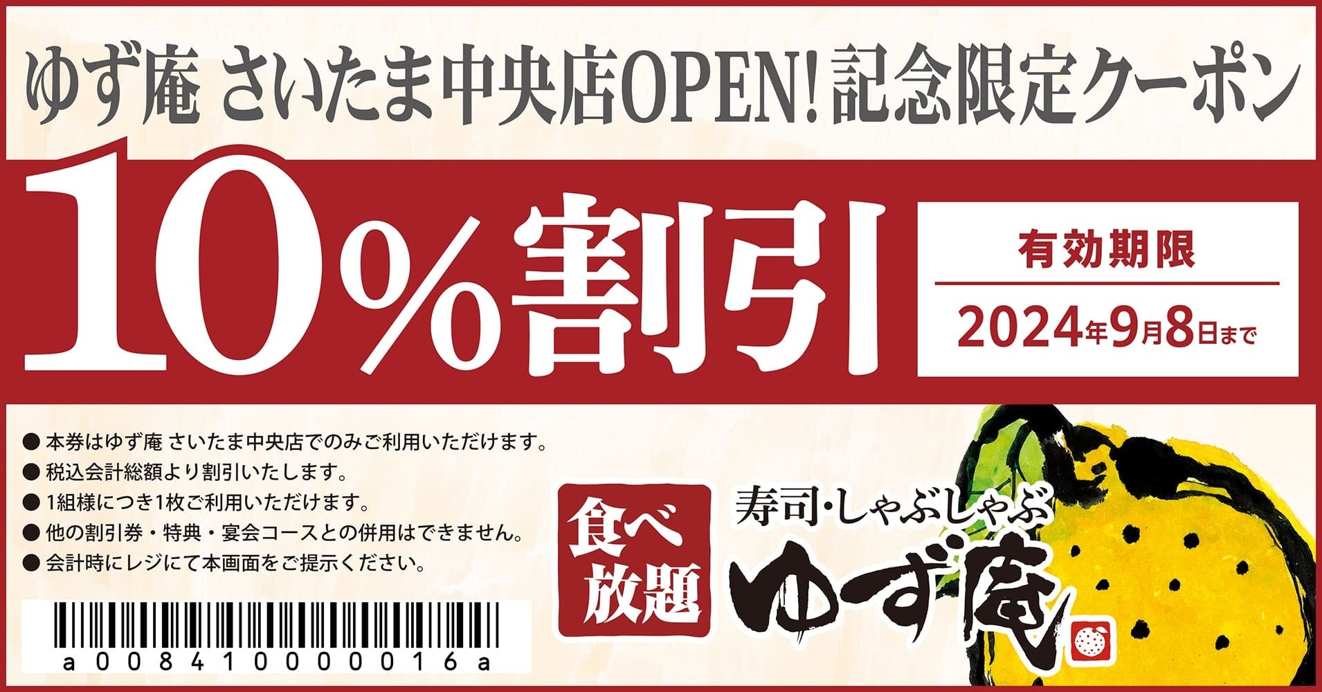 株式会社物語コーポレーション(本社:愛知県豊橋市/代表取締役社長:加藤 央之)が、運営する『寿司・しゃぶしゃぶ ゆず庵』は、2024年6月25日(火)に全国97店舗目となる『寿司・しゃぶしゃぶ ゆず庵 さいたま中央店』(埼玉県さいたま市)をグランドオープンいたします。これを記念して、2024年9月8日(日)までご利用いただける『寿司・しゃぶしゃぶ ゆず庵 さいたま中央店』限定のwebクーポンを配布します。