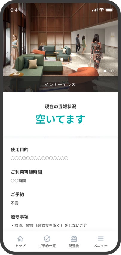 また、5社と株式会社NTT東日本-南関東は、株式会社バカンが提供するシステムを用いた「スミカレジデンスアプリ」を共同開発し、AIを活用した先端技術により、住宅共用施設を快適且つ便利にご利用いただけるサービスを提供します。ご入居者様は、ご自身のスマートフォンやパソコンから住宅共用施設の混雑状況の確認や予約、管理組合からのお知らせを確認することができます。
