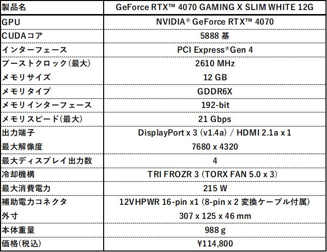 https://jp.msi.com/Graphics-Card/GeForce-RTX-4070-GAMING-X-SLIM-WHITE-12G
