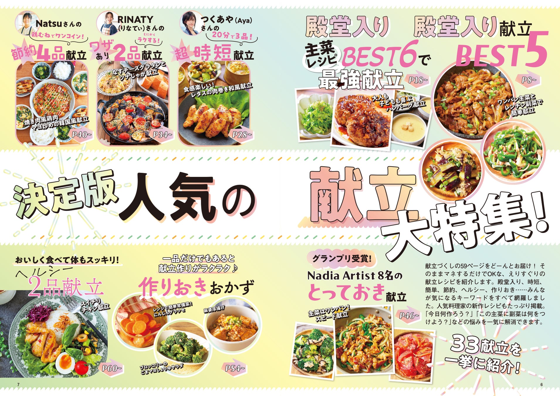 また、NadiaのWebサイトの「献立グランプリ」を受賞した8名のNadia Artistによるバラエティあふれる献立も紹介。とにかく今すぐマネしたくなる献立レシピです。