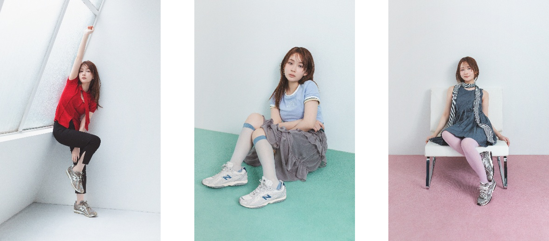 畑芽育さんは、シアースカートを合わせた軽やかな着こなし、シンプルなワンピースにシルバーを効かせたスタイル、赤トップス×カプリパンツに合わせた都会的なコーディネートなど、「204L」の持つファッション性を生かした多彩なスタイリングを披露。トレンドを押さえながらも、さまざまなテイストにフィットする“新しい定番”として、本シューズの魅力を表現しています。