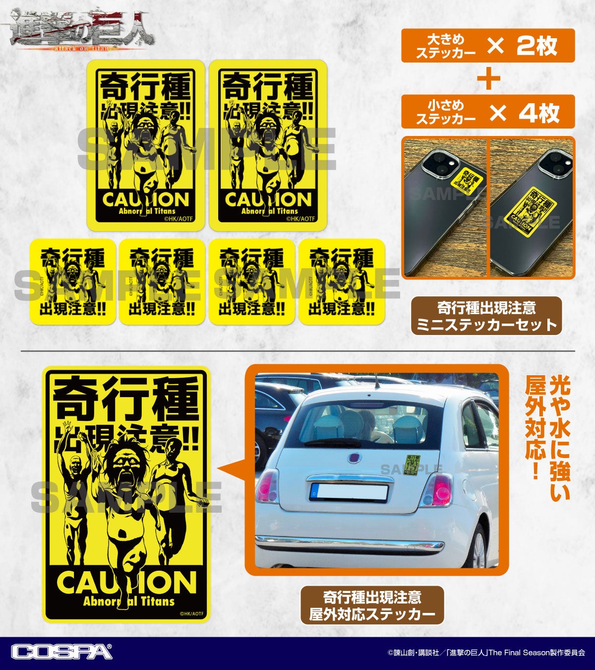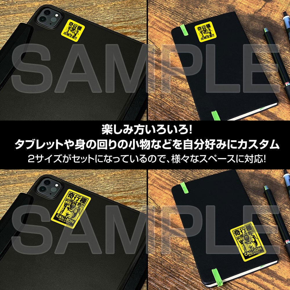 黄色と黒の警告色でデザインされた「奇行種」たちの出現注意ステッカーはミニセットと屋外対応Verがラインナップ!