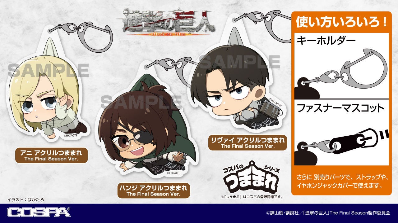 公式キャラクターコスチュームやアパレル・グッズの企画、開発、製造を行う株式会社コスパ(所在地:東京都渋谷区、代表取締役:松永芳幸)は、『進撃の巨人』新グッズを発表した。