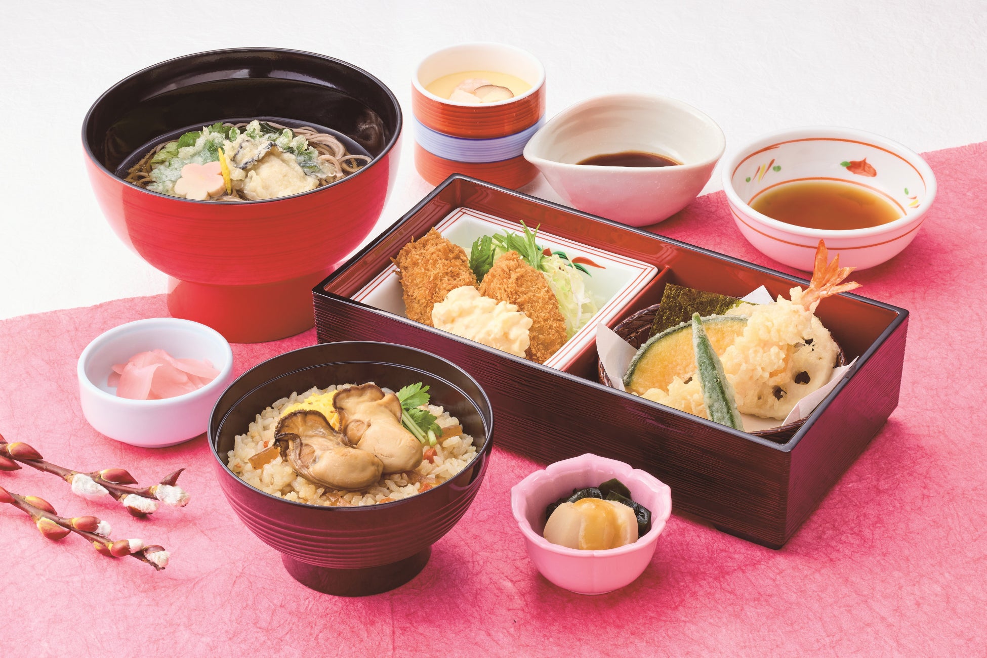 店仕込みの牡蠣ごはん、牡蠣の天ぷら、牡蠣天そば、そして牡蠣フライなど、「牡蠣」を存分に楽しめるメニューです。