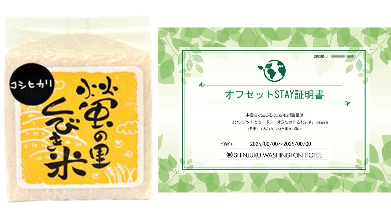 新宿ワシントンホテル本館・ANNEX(別館)(東京都新宿区、総支配人:和田修治)は、ホテル業界初となる農業由来のJ-クレジットを活用した宿泊プラン「農業応援 CO₂ゼロSTAY🄬プラン」を2025年6月10日(火)より販売開始します。宿泊で生じるCO₂排出量を実質ゼロにできるとともに、特典として「蛍の里くびき米」(新潟県産コシヒカリ)2合および「オフセットSTAY証明書」を贈呈します。