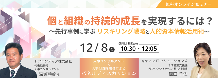 【12月8日(金)開催 無料オンラインセミナー】 「個と組織の持続的成長を実現するには?~先行事例に学ぶリスキリング戦略と人的資本情報活用術~」