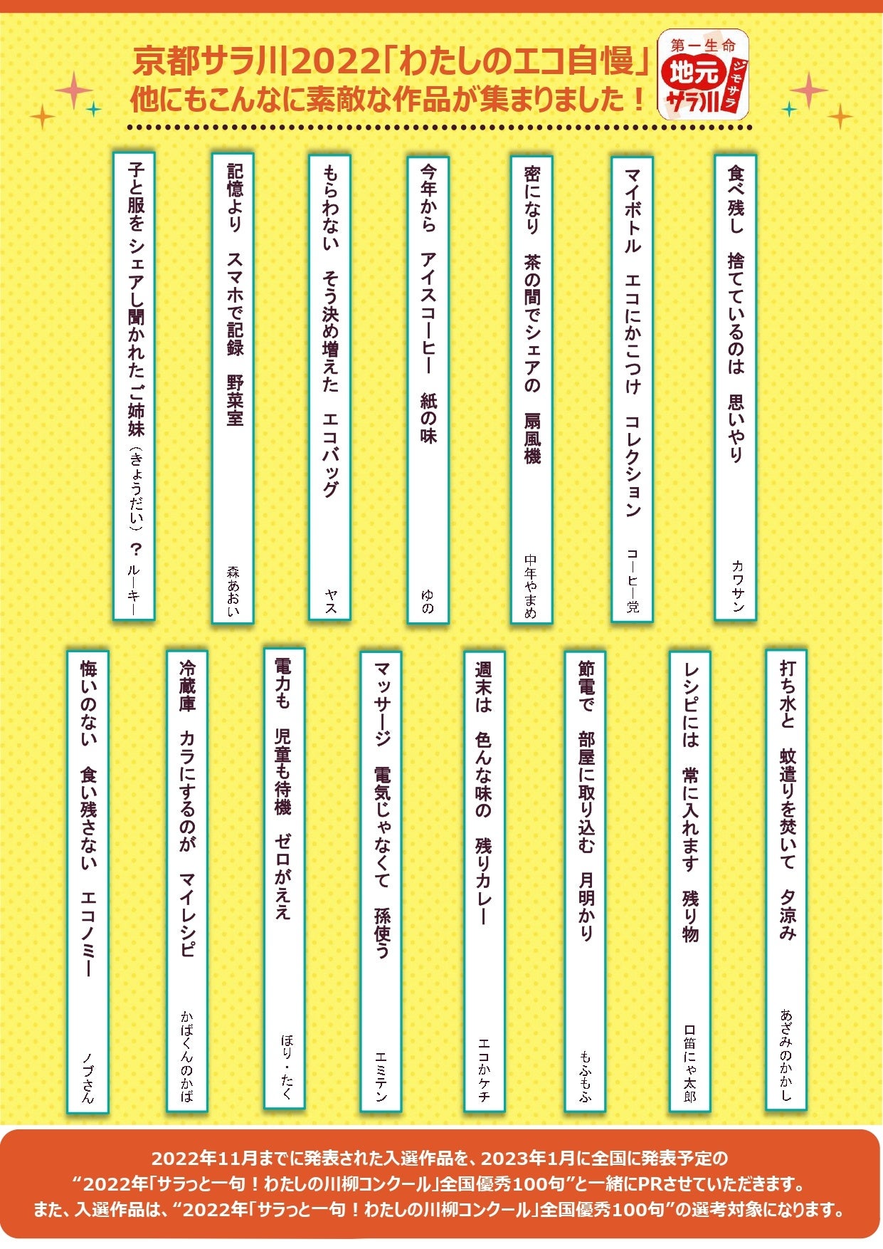 - 「京都サラ川(サラっと一句!わたしの川柳コンクール)2022『わたしのエコ自慢』」について