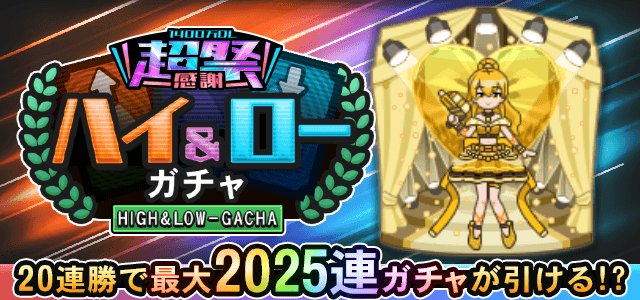 最大2025連引けるハイ&ローガチャ登場