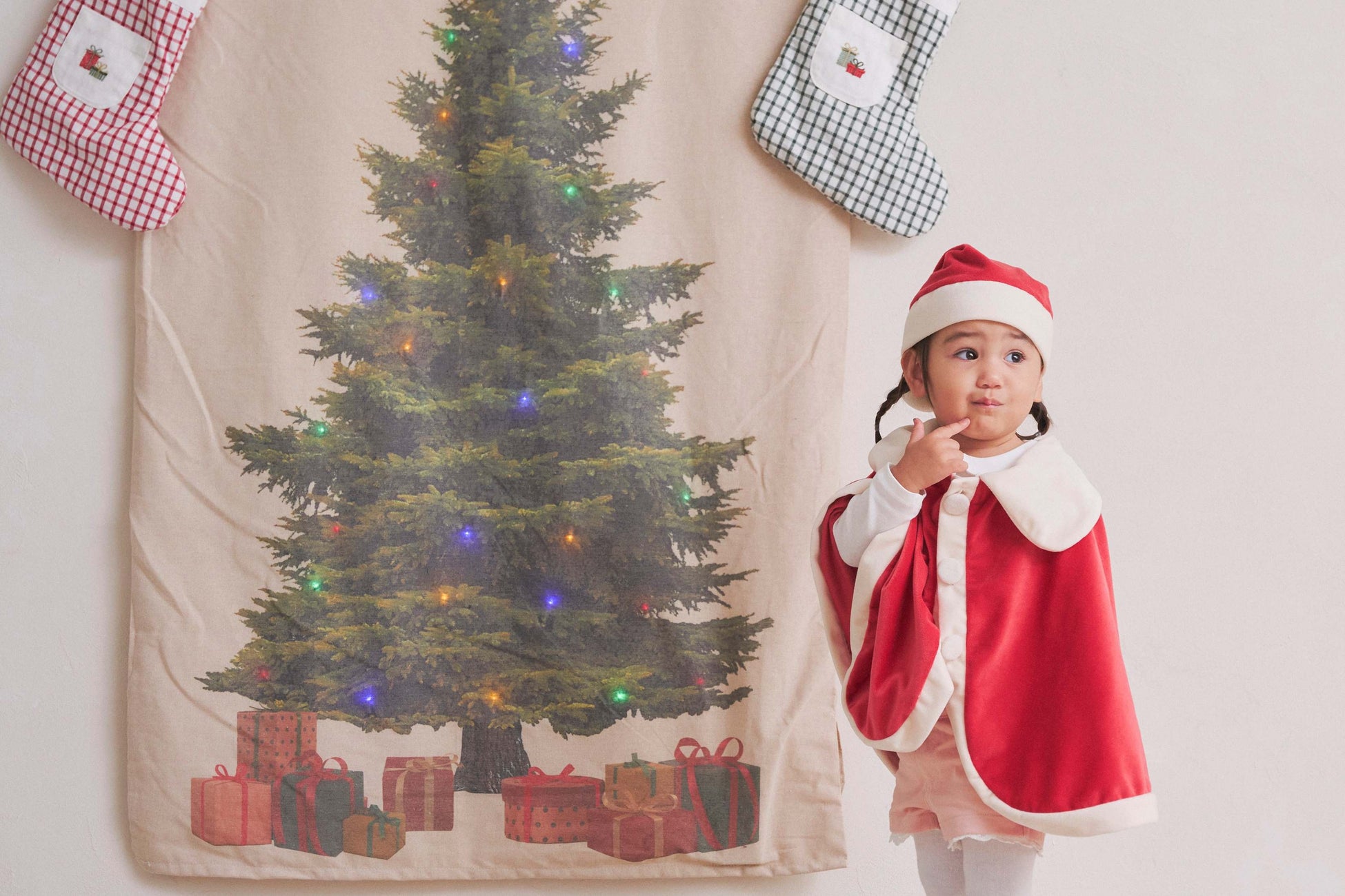 サンタさん・トナカイ・ツリーのコスチュームは着せやすいポンチョ型で簡単に仮装できちゃうからクリスマスパーティーにもおすすめ!※約80cm~100cm対応