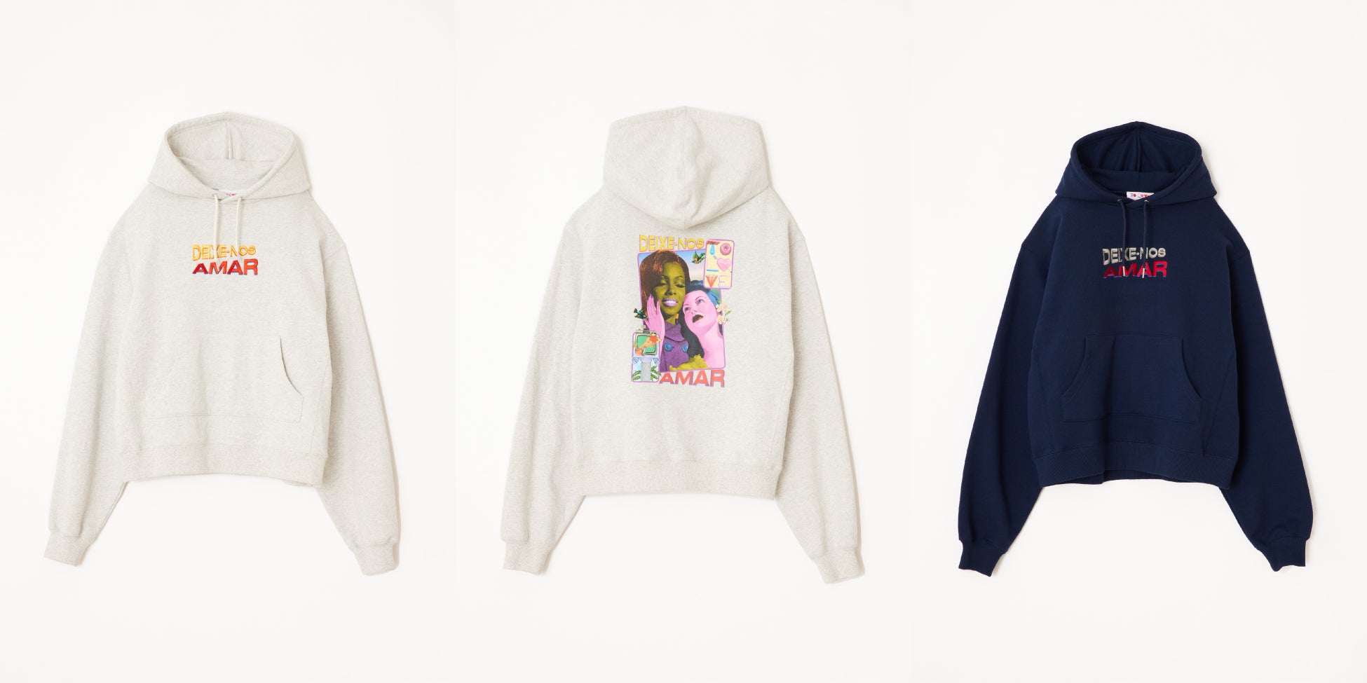 PEDRO NEKOIオリジナルのロゴを立体感のあるサガラ刺繍で施したスウェットトップスや、ハートモチーフが目を引くクロップド丈のニットトップス、ユニセックスでも着用可能なフーディーとジョガーパンツ、総柄プリントのトップスやエコバックなどメッセージ性のあるキャッチーなアイテム全6型が揃います。