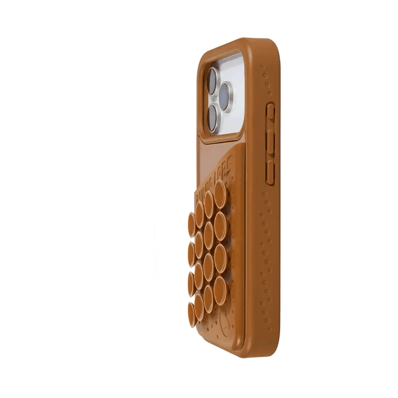 「Octo Pouch Phone Case」では、背面に複数の吸盤状パーツを新たに配置。ガラスやミラー、金属、プラスチック、大理石などの平面に加え、ゆるやかな曲面にも吸着し、安定した固定が可能です。