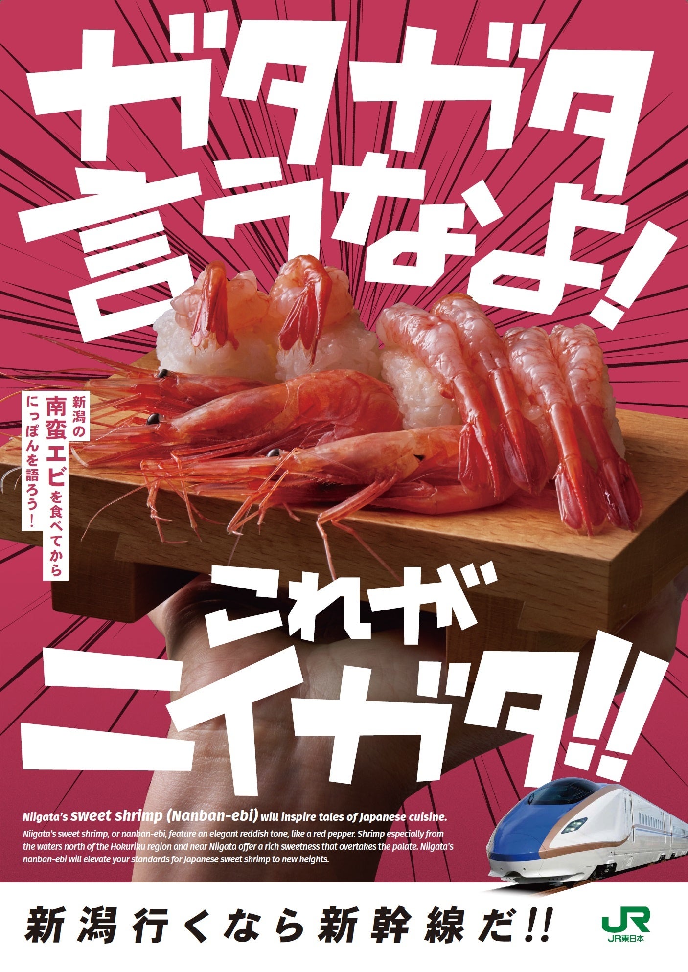 新潟には米や日本酒だけでなく、全国に誇る美味しい味覚がたくさんそろっています。まずは「ガタガタ言わずに」新幹線で新潟へお越しください。