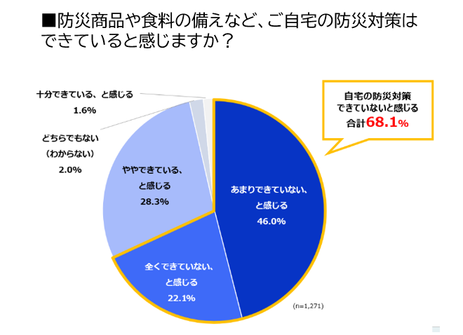 《防災商品や食料の備えなど、自宅の防災対策ができていないと感じている人は全体の68.1%》
