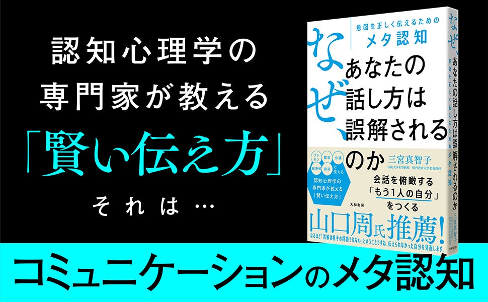 株式会社大和書房(本社:東京都文京区、代表取締役:大和 哲)は『なぜ、あなたの話し方は誤解されるのか 意図を正しく伝えるためのメタ認知』(三宮真智子 :著)を2025年11月19日に発売いたします。