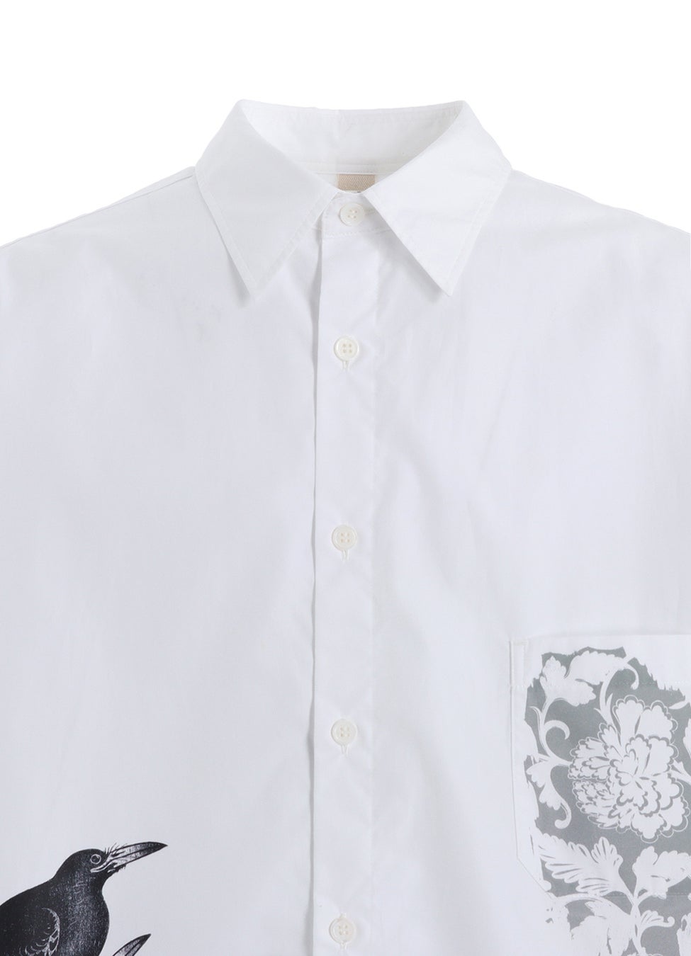 本アイテムは、日本画や墨絵から着想を得た“和”の美意識を基に、鴉のモチーフを大胆に描いた一着です。ボディには、Ground Y 2025年春夏コレクションより始動した新プロジェクト「海外生産ライン」の〈COTTON BROADCLOTH STANDARD BIG SHIRT〉を採用。程よいハリ感と柔らかさを兼ね備えたコットンブロード生地にゆったりとしたシルエットを掛け合わせ、ホワイトとブラックの2色で仕上げています。