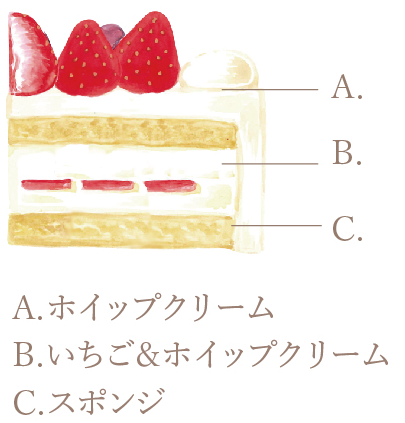 こだわり:ふわふわのスポンジでホイップクリームといちごをサンドした