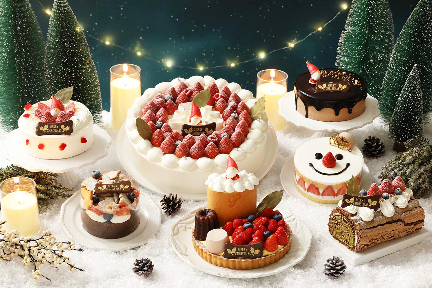 毎年恒例のクリスマスケーキも大変ご好評をいただいており、2023年は“ピネードクリスマスの絵本の世界へようこそ!” をテーマに、サンタクロースが絵本から飛び出したようなシーンや「パティスリーピネード」らしい華やかな世界観を表現、新商品の直径約30cmで中央のサンタクロースが愛らしいスペシャルなクリスマスケーキ『グランドクリスマス』、「パティスリーピネード」の人気商品を詰め込んだ『ピネードXmasマーケット』、動きのある仕掛けが楽しい『プレゼントガトーショコラ』をはじめ、『Xmas チョコレート Good Night』、『Xmas スノーマン』、『ブッシュ・ド・ノエル』、『Xmas 苺のショートケーキ』の全7品で展開いたします。