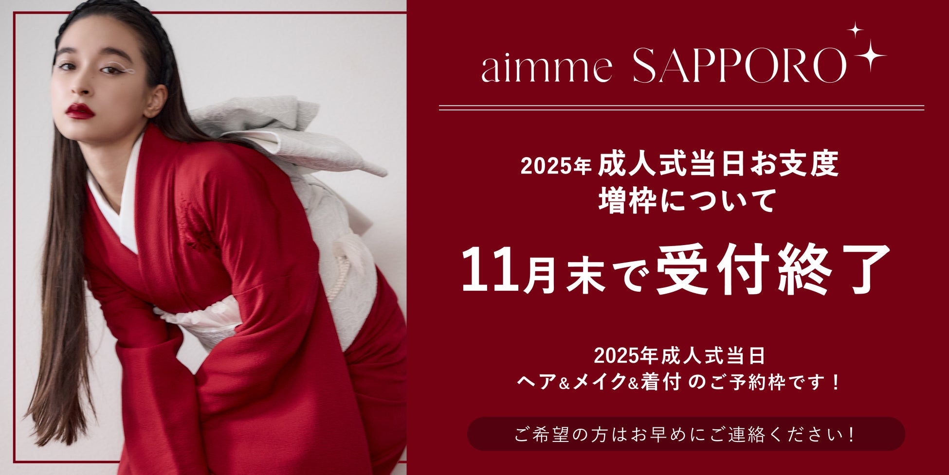 【aimme札幌店】大好評の2025年成人式当日支度の受付が11月末で終了!
