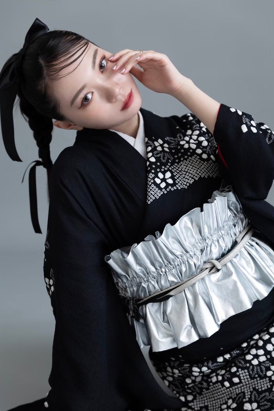 aimmeオリジナルの帯揚げ、帯締めなどを使用し、個性溢れるスタイリングをプロのスタッフがコーディネート。