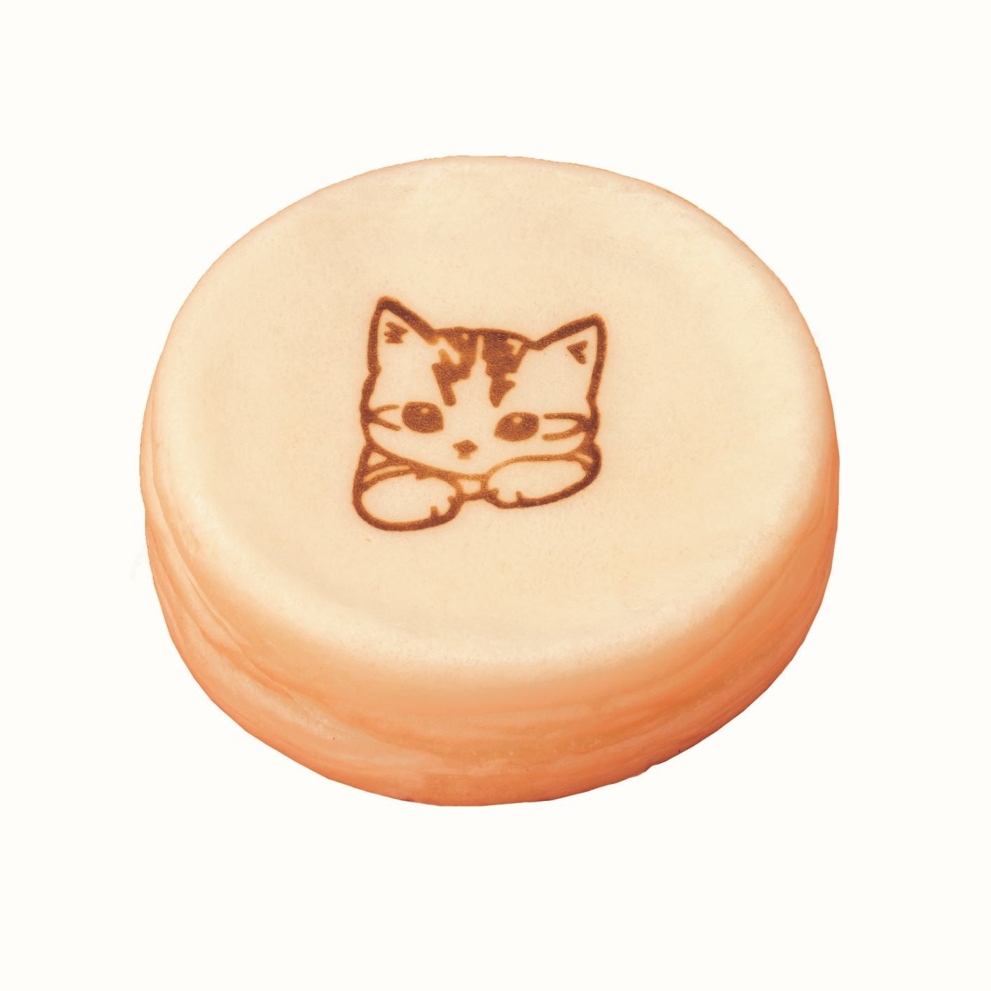 【内容】とらねこのしっぽをイメージしたキャラメルミルククリームサンドです。キャラメルクリームを折り込んだ生地でキャラメルミルククリームをサンドした優しい味わいが口に広がります。パッケージは「mofusand」コラボデザインとなります。