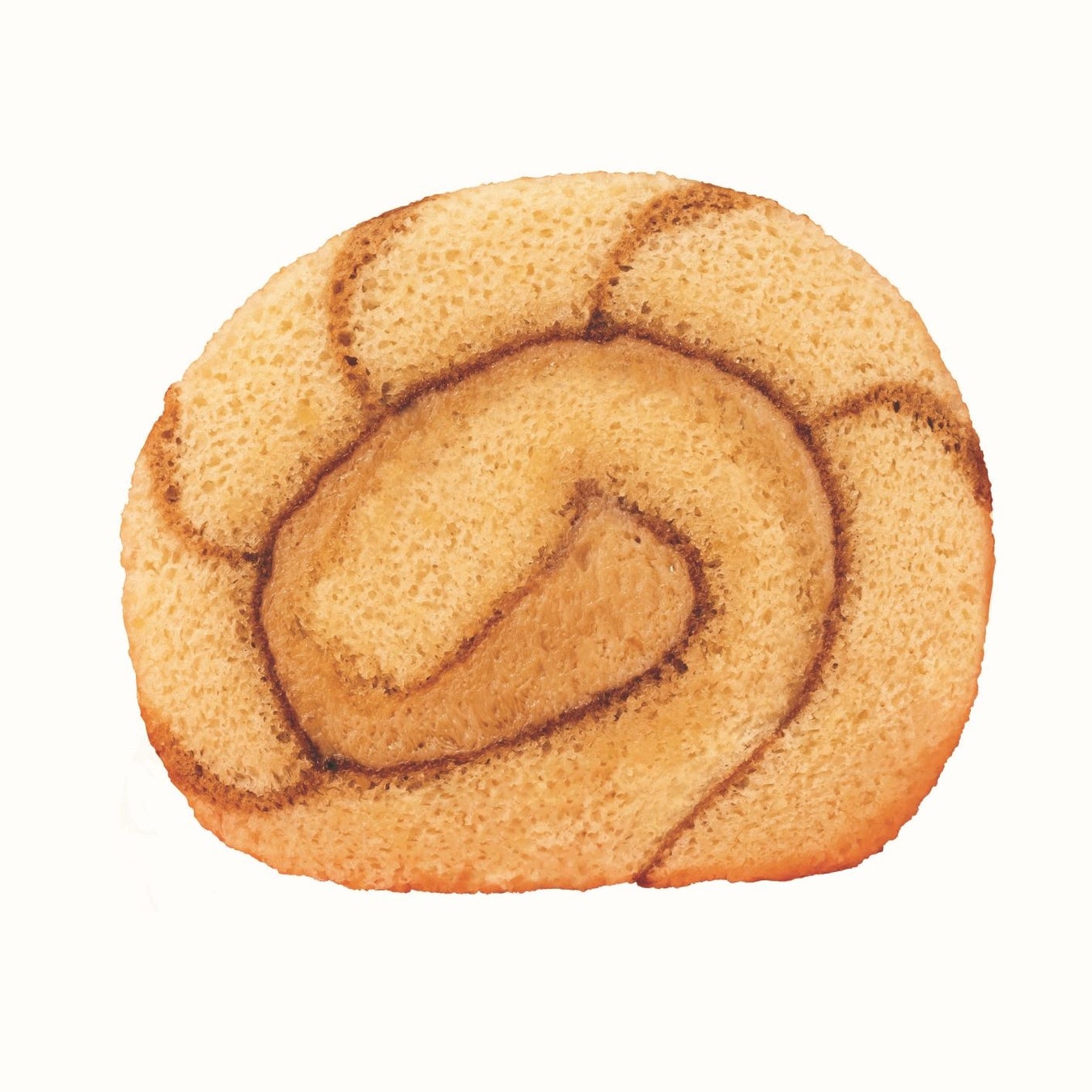 【内容】茶トラねこのしっぽをイメージしたロールケーキ。キャラメル風味のクリームを生地でくるんと巻きました。パッケージは「mofusand」コラボデザインとなります。