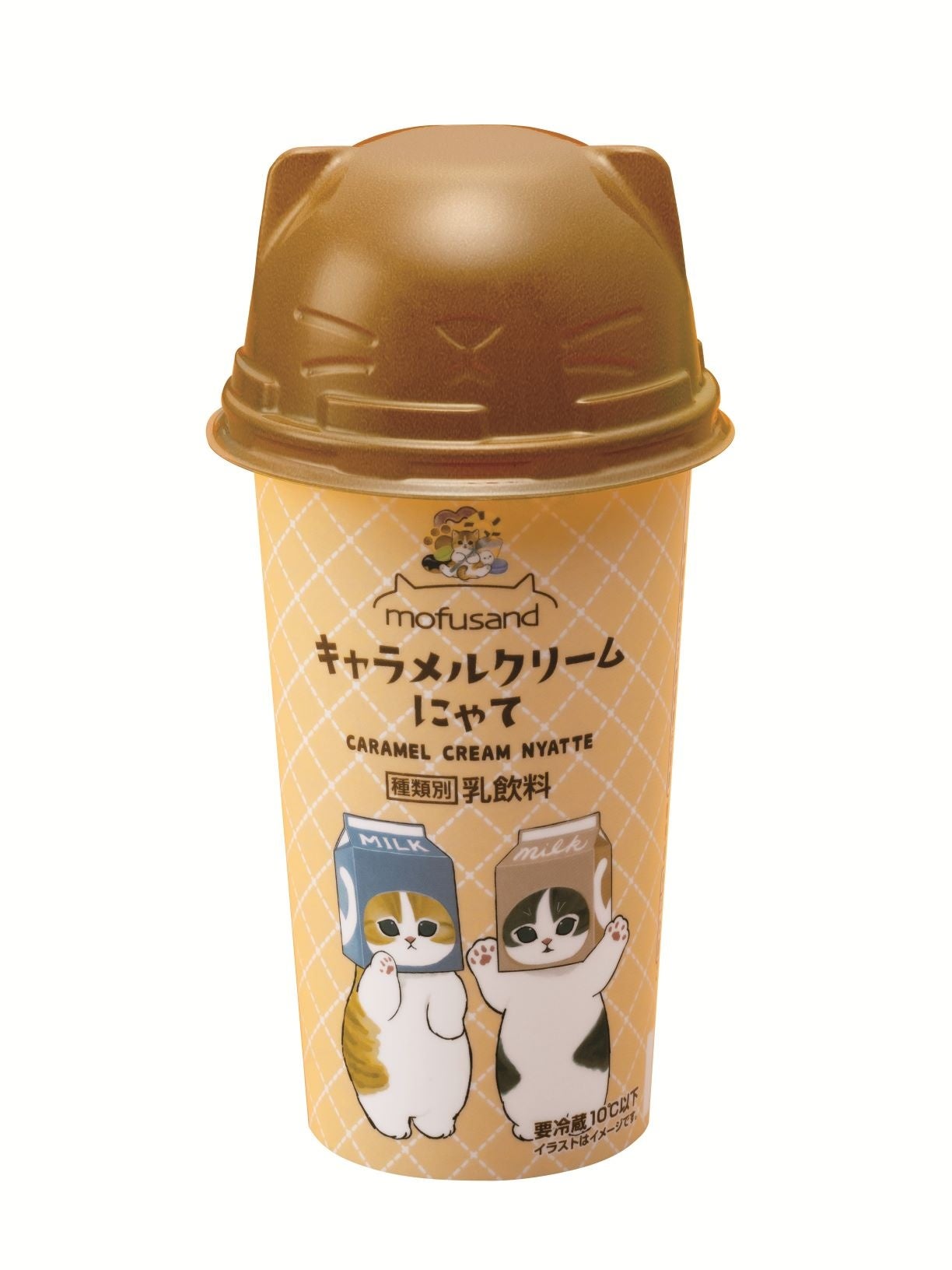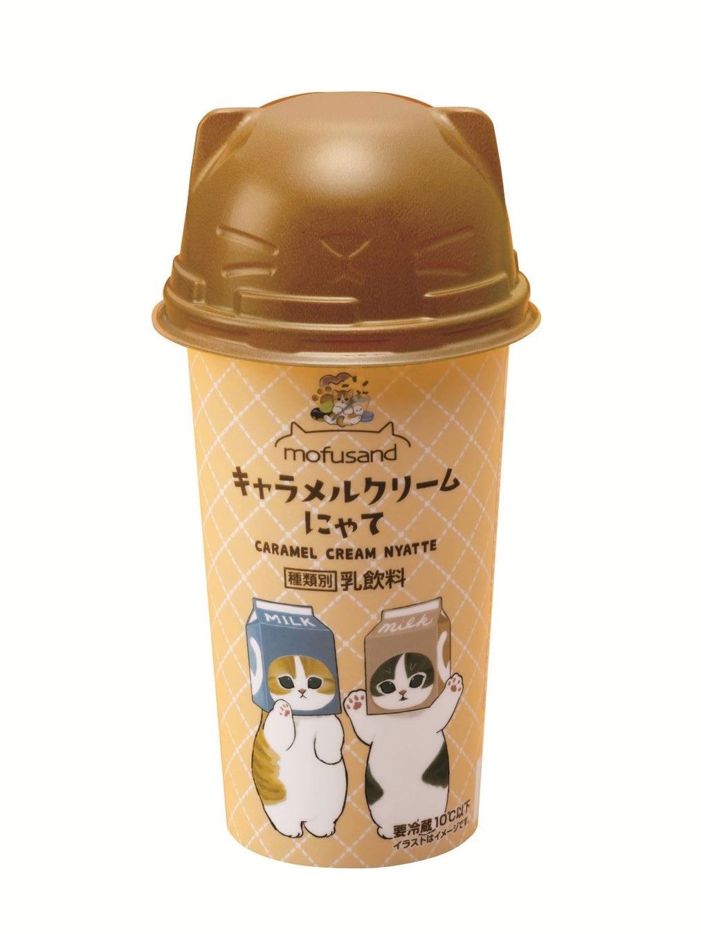 【内容】オリジナルねこ耳キャップがついたミルクとキャラメルのまろやかな甘さが特長の、キャラメルラテです。パッケージは全5種類の「mofusand」コラボデザインとなります。