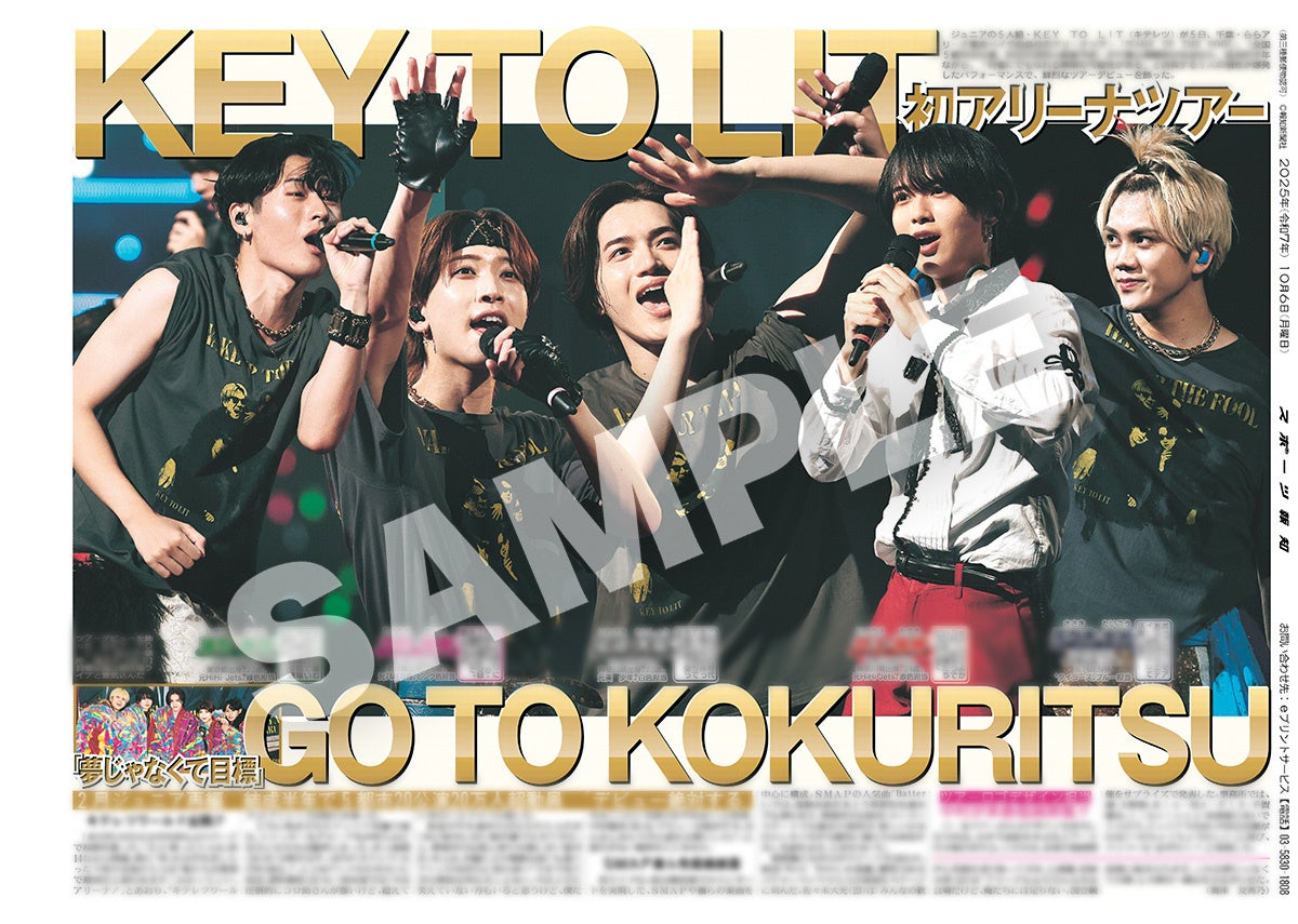 スポーツ報知を発行する報知新聞社(代表取締役社長・長谷川剛)は新聞の一部紙面をコンビニエンスストアのマルチコピー機からプリントできる「スポーツ報知コンビニプリント」サービスを展開中。スポーツ紙ならではの大きな写真を使った紙面をプリント版として販売しています。10月10日付掲載、NEWSの全国アリーナツアー「NEWS LIVE TOUR 2025 変身」の神奈川公演ファイナルの模様を伝える紙面を発売。全員2パターンと個人別3パターンの合わせて5種類になります。また、ジュニアの5人組・KEY TO LIT(キテレツ)の自身初のアリーナツアー「WAKE UP THE FOOL」の千葉公演最終日の紙面、WEST.の小瀧望のインタビュー紙面前編も発売中です。