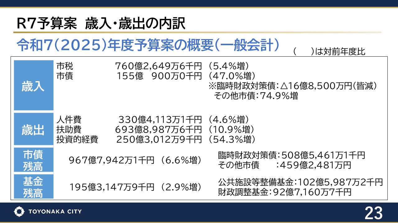 豊中市における令和7年度(2025年度)予算案をまとめましたので発表します。