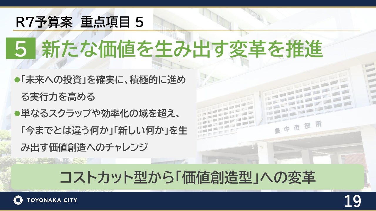 予算案 重点項目5「新たな価値を生み出す変革を推進」