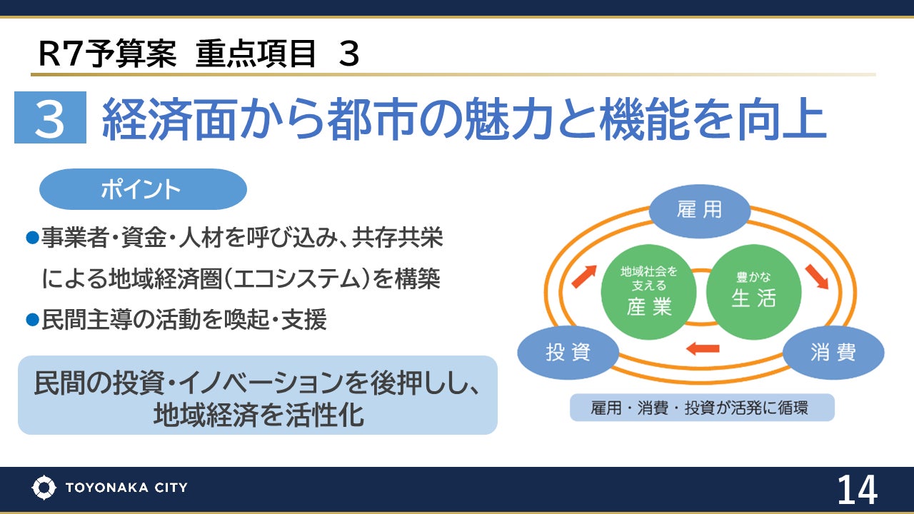 予算案 重点項目3「経済面から都市の魅力と機能を向上」