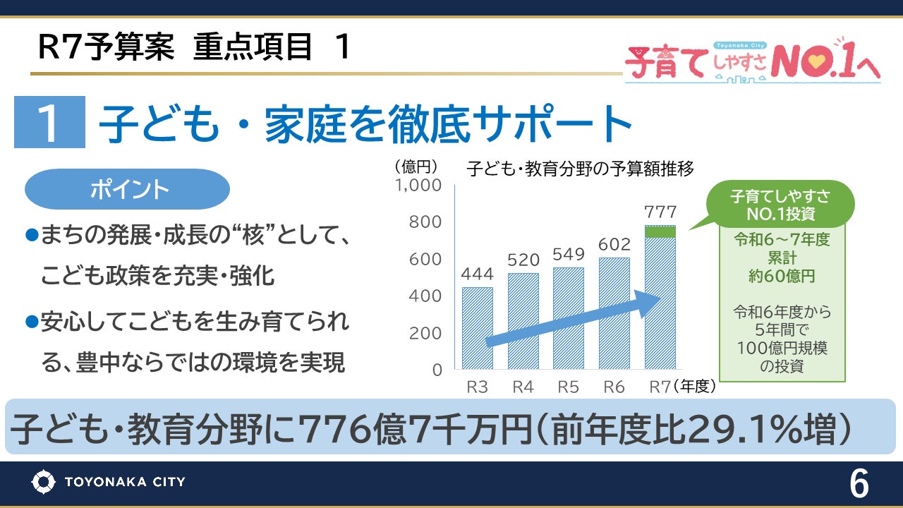 予算案 重点項目1「子ども・家庭を徹底サポート」