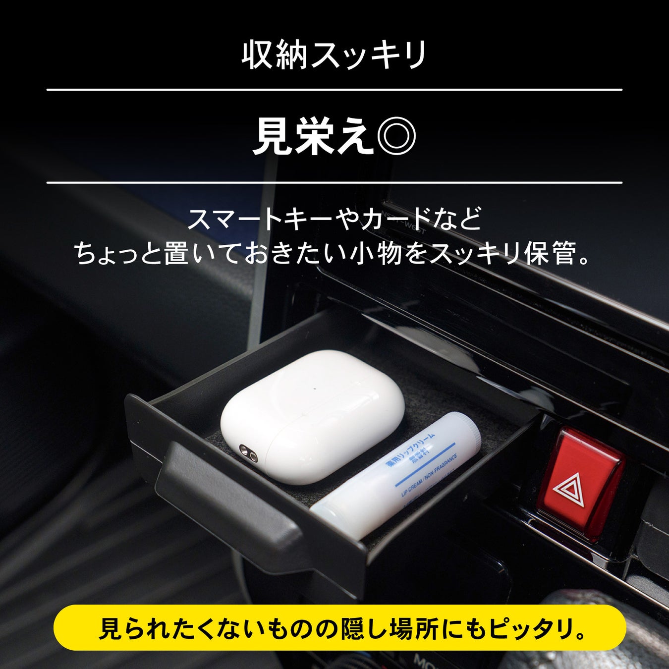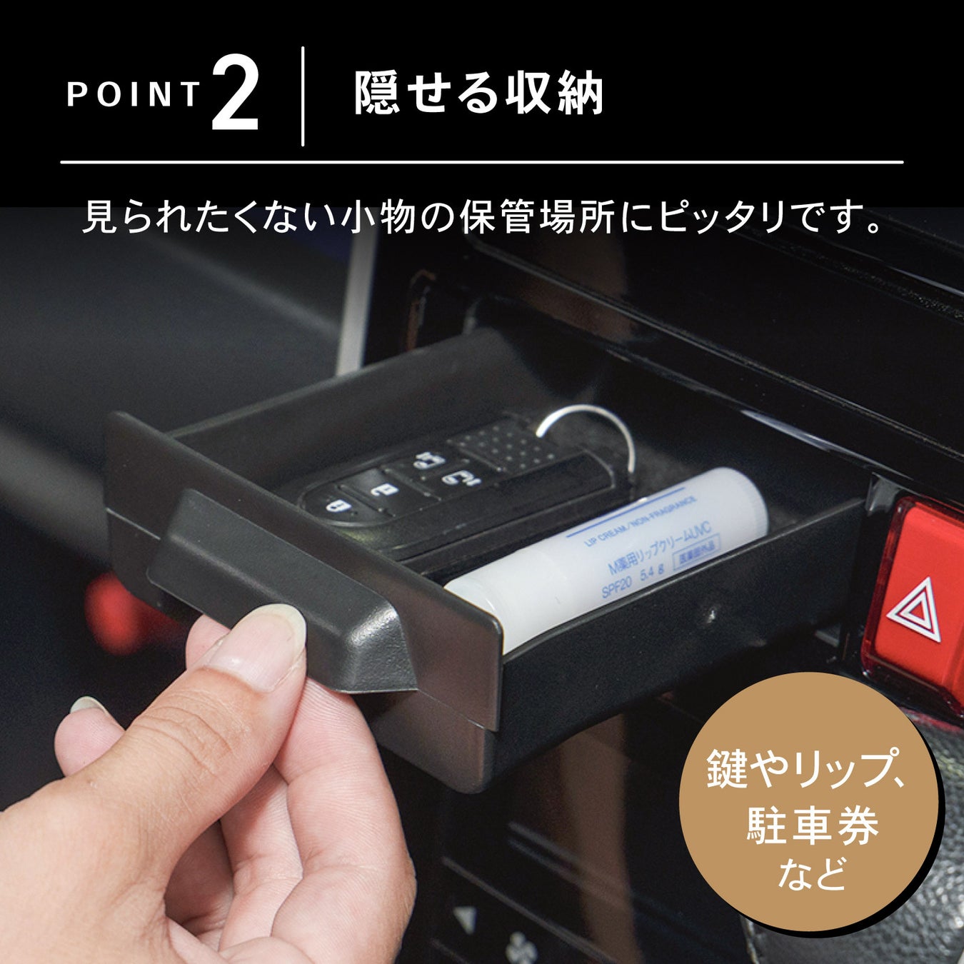 スマートキーやカードなど、ちょっと置いておきたい小物をスッキリ保管。