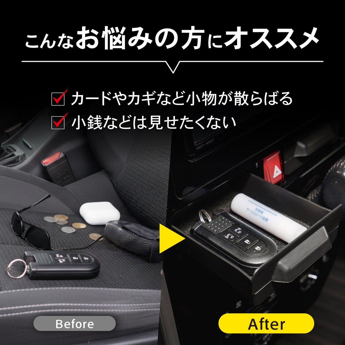 タンク/ルーミー900系専用センターコンソールポケット。スマートキーやカードなどの散らかりがちな小物をスッキリ整理。差し込むだけのかんたん取り付け、届いたその日から使えます。