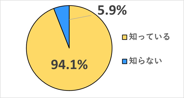 「新型コロナウイルスが「5類感染症」(季節性インフルエンザ同等)移行に関して、知っていますか?」という質問に対して、「知っている」と回答した方が94.1%となりました。9割以上の方が「5類感染症」に移行することを知っているようです。