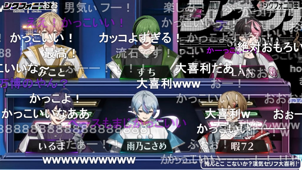 シクフォニは、2022年のオーディションで選ばれた6人によって結成された2.5次元タレントグループです。同年8月12日に楽曲『J0KER×JOK3R』でデビューし、今年4月にはYouTubeチャンネル登録者数が100万人を突破。5月にはグループ初のライブツアーを開催し、東京ドームでの公演を目標に活動しています。ゲストの綾小路が登場すると、「ほんものだーーーー!!」「豪華だーーーー!!!!」「きたー!!!!」などの感激コメントで画面が埋まります。
