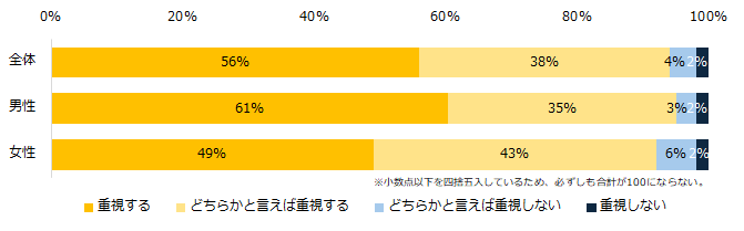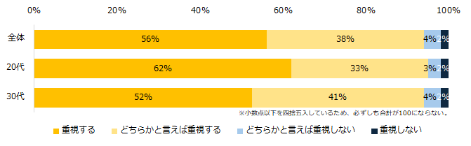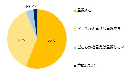働く企業を選ぶ上で成長環境の有無を重視するかを伺うと、94%が「重視する」(重視する:56%、どちらかと言えば重視する:38%)と回答しました。