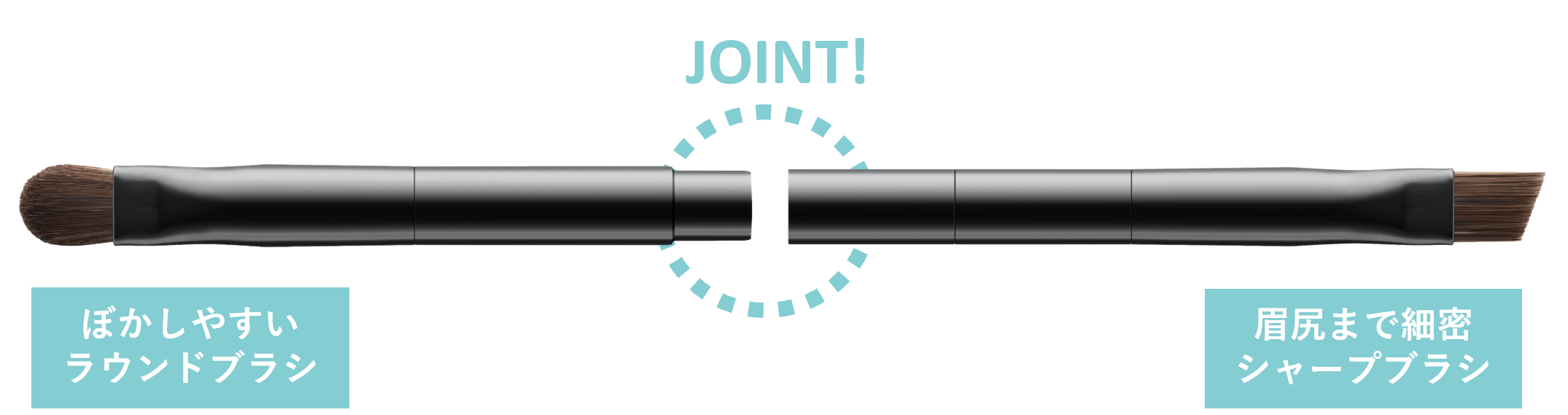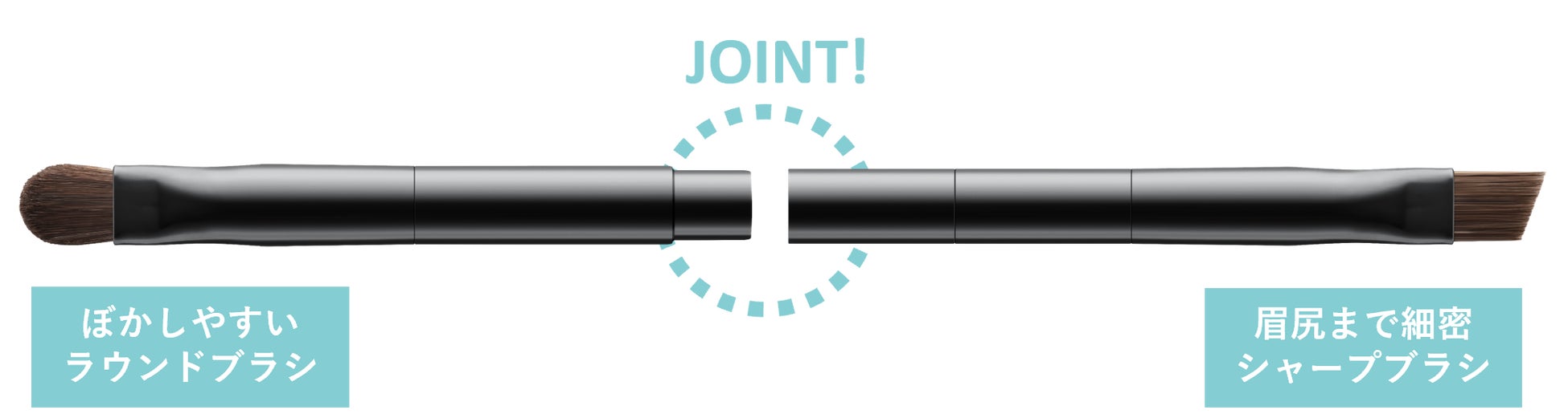眉尻まで細密なラインを描けるシャープブラシと、ふんわりぼかせるラウンドブラシがセットされ、描き分け自在で自眉のように自然な眉に仕上げます。