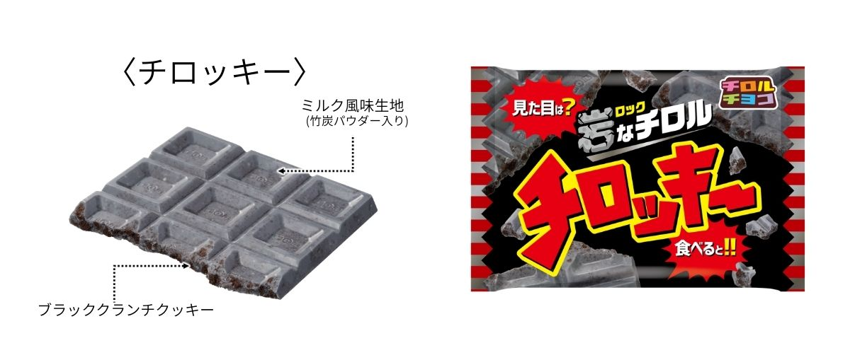 ミルク風味生地には竹炭パウダーを入れることで、見た目もまるで“岩”を再現!そのインパクトあるビジュアルと、ひとくち食べた瞬間に広がるまろやかな味わいとのギャップを楽しむことができます。さらにブラッククランチクッキーのザクザク食感で食べ応えも抜群です。ロックな外見とチロルらしい遊び心を掛け合わせた、これまでにない一枚です。