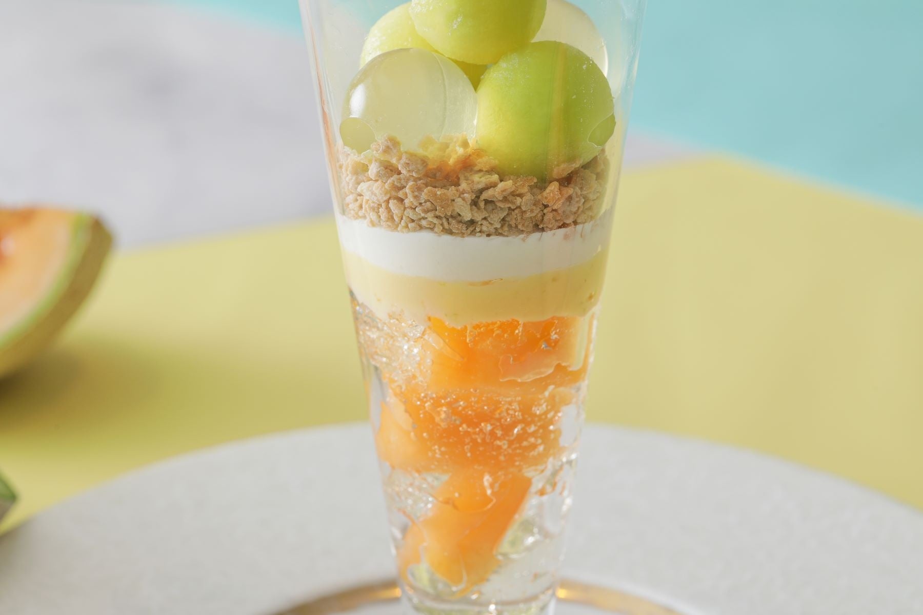 ホテル開業より大人気!第49弾大人のご褒美パフェは、赤肉と青肉のどちらも使用した“メロン”が主役!「大人のご褒美パフェ ~Juicy Melon~」販売