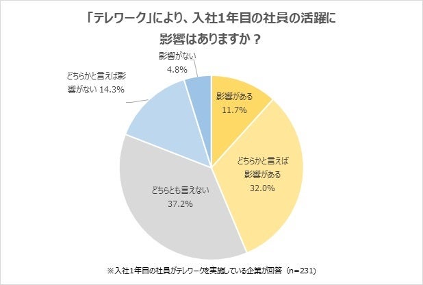 企業の人事担当者を対象に、「テレワークが、入社1年目の社員の活躍にもたらす影響」を調査しました。