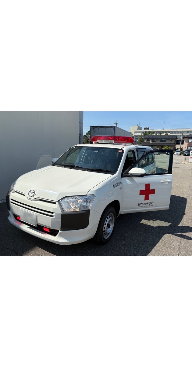 献血運搬車とは、病院や血液センターなどの間で、採取された血液や血液製剤を安全かつ迅速に運搬するための専用車両です。今回寄贈する車両は、赤色灯とサイレンを備えた緊急走行車両です。
