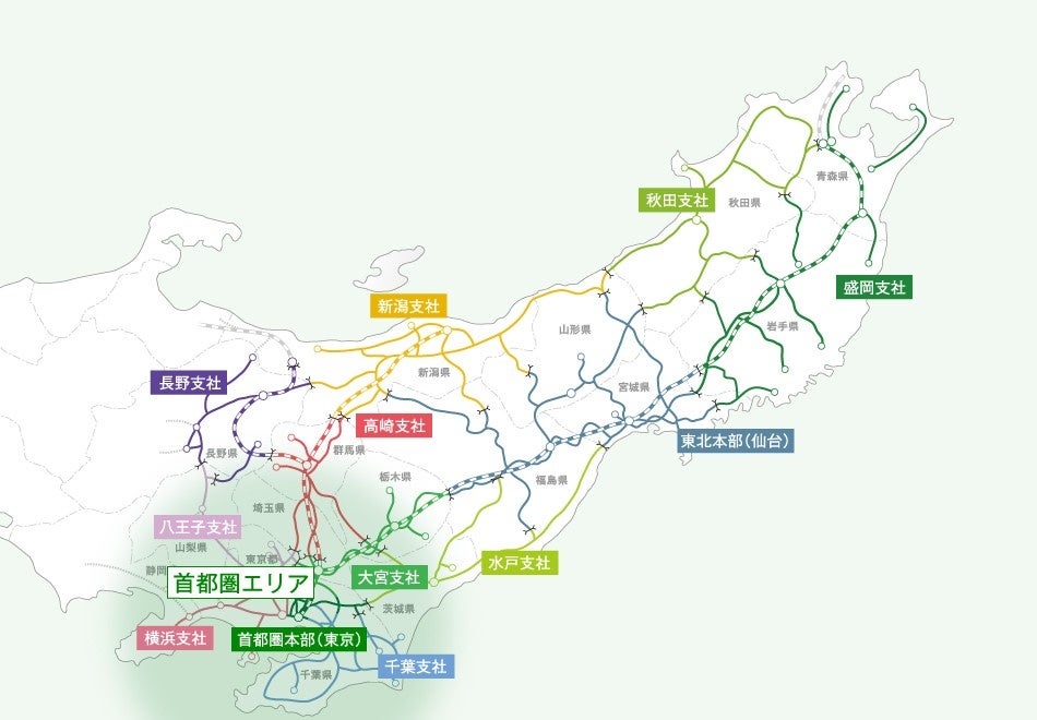 エリア職において採用エリアを2区分(関東・甲信越、東北)から8区分(首都圏、高崎、水戸、長野、仙台、盛岡、秋田、新潟)とすることで、より地域社会の発展に向けた貢献意欲が強い人材の採用をめざします。
