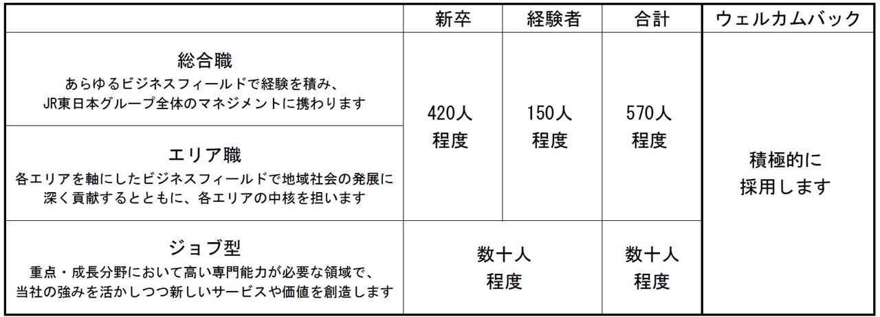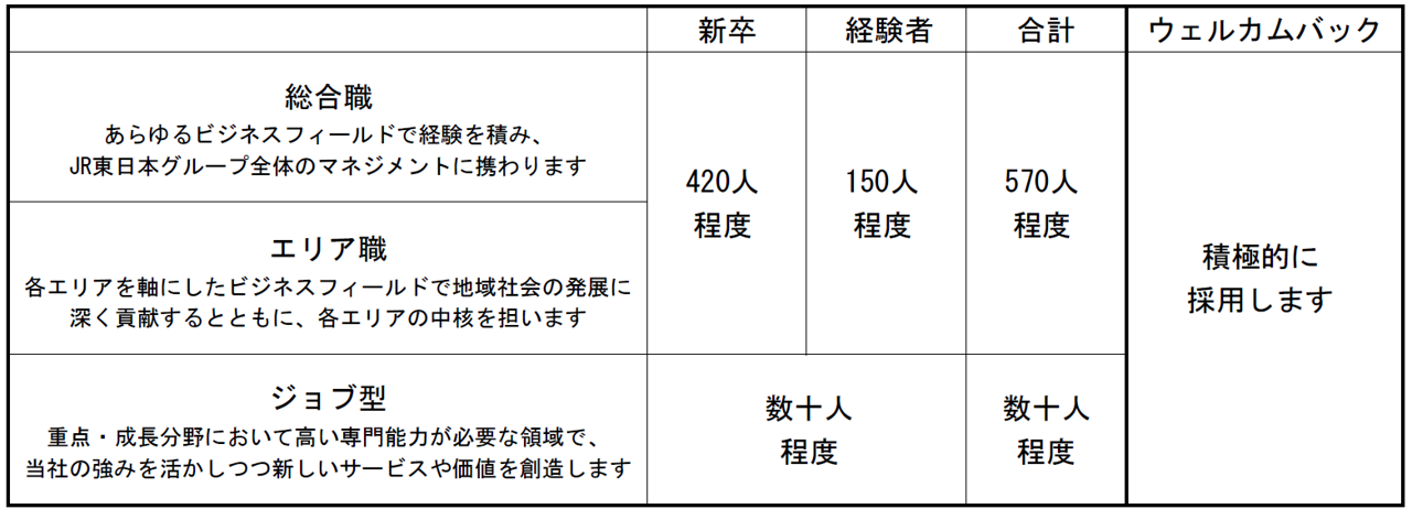 詳細はJR東日本の採用ホームページ(https://www.jreast.co.jp/recruit/)をご覧ください。