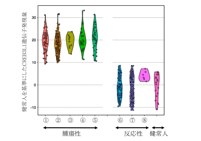 図1.腫瘍性と反応性血球増加症におけるCREB3L1の発現量の比較