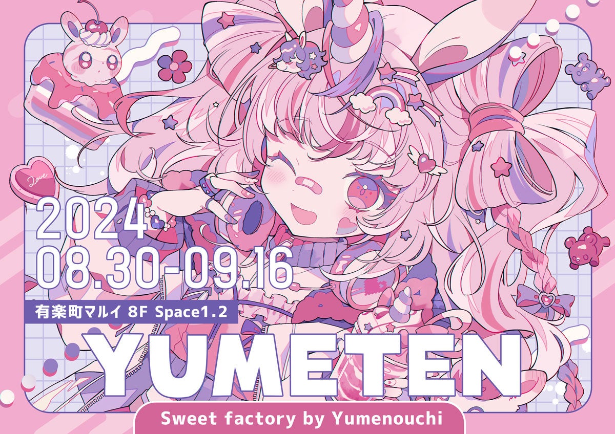 商業グッズのイラストを中心に活躍する人気イラストレーター・夢ノ内千春氏のイラスト集『DREAMING』『HEART TRICK』に続く、待望の第3弾『POPPING SWEET yumenouchi artworks』の発売を記念して、期間限定ポップアップストア『YUMETEN Sweet Factory by Yumenouchi』を開催いたします!