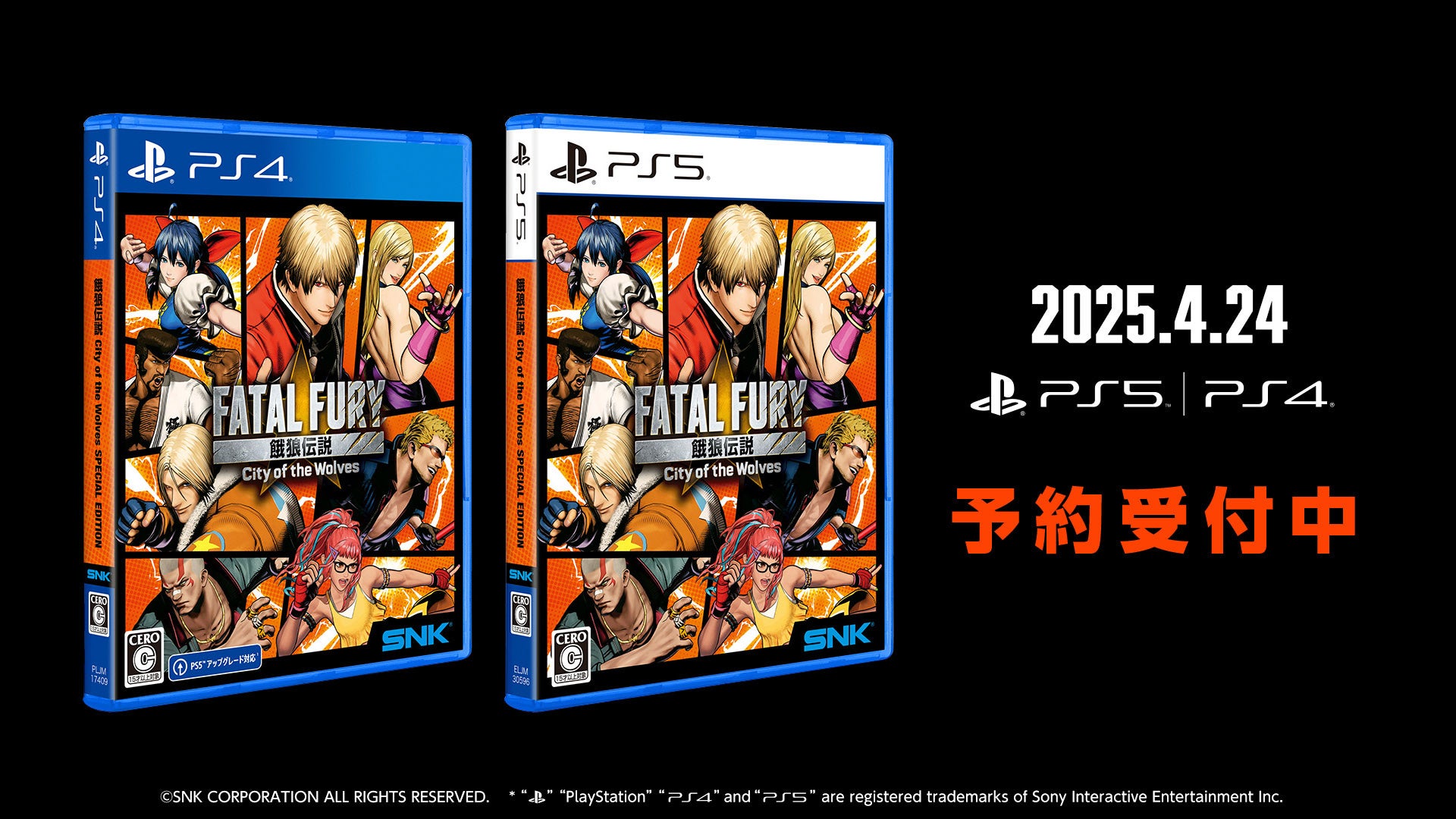 株式会社SNK (本社:大阪府大阪市、代表取締役社長:松原 健二)は、2025年4月24日(木)発売予定の新作格闘ゲーム『餓狼伝説 City of the Wolves』のパッケージ版(PlayStation®5/PlayStation®4)店舗別購入特典に関する情報を、公式サイトにて公開したことをお知らせいたします。
